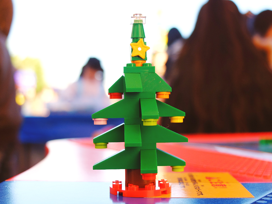 レゴブロックでオリジナル・クリスマスツリーを作れるコーナー「クリスマスツリー・ビルド」。